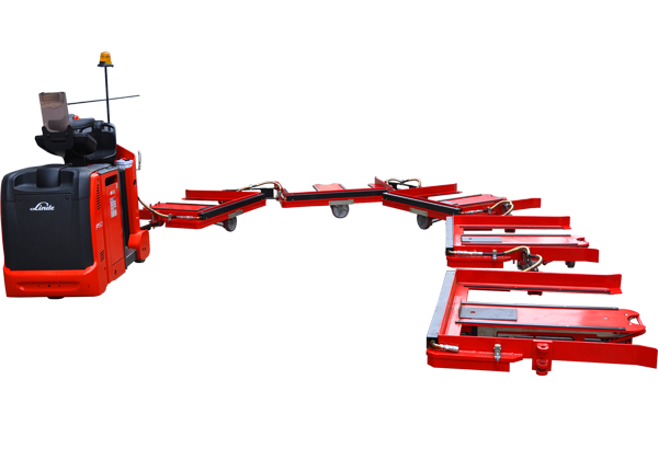 創(chuàng)新性的林德物流車是現(xiàn)代化生產廠商理想的物流解決方案。用于運輸放置于托盤或拖車上的各種規(guī)格的貨物,建立一個有負載保護,低噪音和低磨損的運輸過程。聯(lián)動的防滑鎖可防止拖車移動。